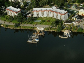 We are a condominium community located on the west bank of the Indian River at the former sites of the Rockledge House and the Indian River Hotel, one mile south of FL–520. Our historic dock has welcomed many dignitaries, including President Warren G. Harding in 1924.