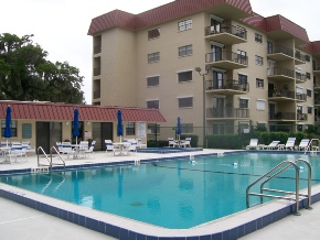 Our buildings were constructed in 1974. The "A" building—1025 Rockledge Drive—houses 65 units along with our office and four community rooms. The "B" building—1049 Rockledge Drive—houses 35 units. Each unit has assigned parking, most with covered carports. Each floor has laundry and storage units for its residents.